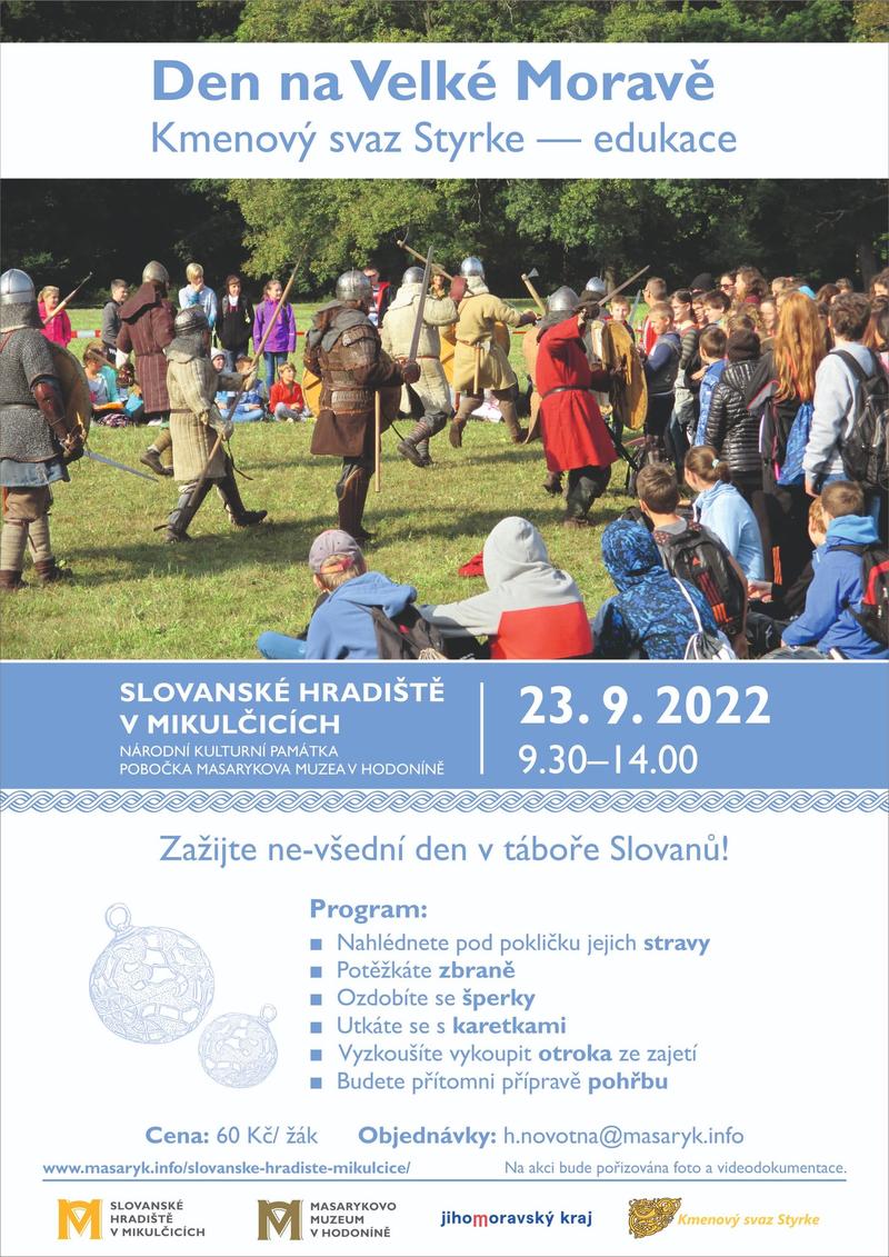 Edukační program pro objednané školy v dobovém táboře Slovanů se skupinou Styrke. Zábavnou formou podaný tehdejší život, řemeslo, odívání, zbraně a zbroj, ukázky bojů. Obsahuje krátkou prohlídku expozice památníku.