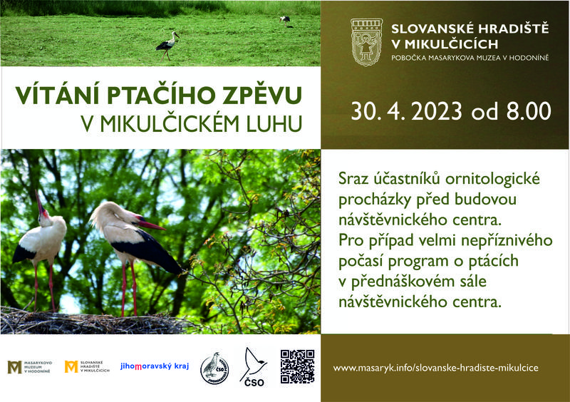 Jako tradičně pořádáme ve spolupráci s Českou společností ornitologickou procházku v rámci celostátní akce VÍTÁNÍ PTAČÍHO ZPĚVU dopolední procházku s ornitologem přírodou jarního Mikulčického luhu. Odborným garantem programu je pan Karel Šimeček. Procházka s pozorováním a poslechem ptáků v lužním lese se uskuteční tuto neděli 30. dubna 2023 a potrvá od 8 hodin přibližně do 11.hodiny.
