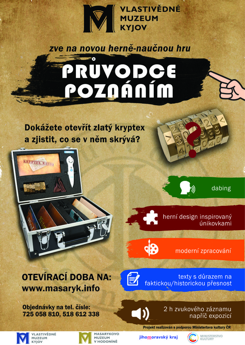 V rámci stálé expozice Vlastivědného muzea Kyjov je pro návštěvníky k dispozici za poplatek herně-naučná hra Průvodce poznáním. Dokážete otevřít zlatý kryptex a zjistit, co se v něm skrývá? Čekají Vás 2 hodiny zvukového záznamu napříč stálou expozicí, texty s důrazem na faktickou/historickou přesnost, moderní zpracování, herní design inspirován únikovkami. Při zadání správného číselného kódu si návštěvník otevře kryptex s odměnou.