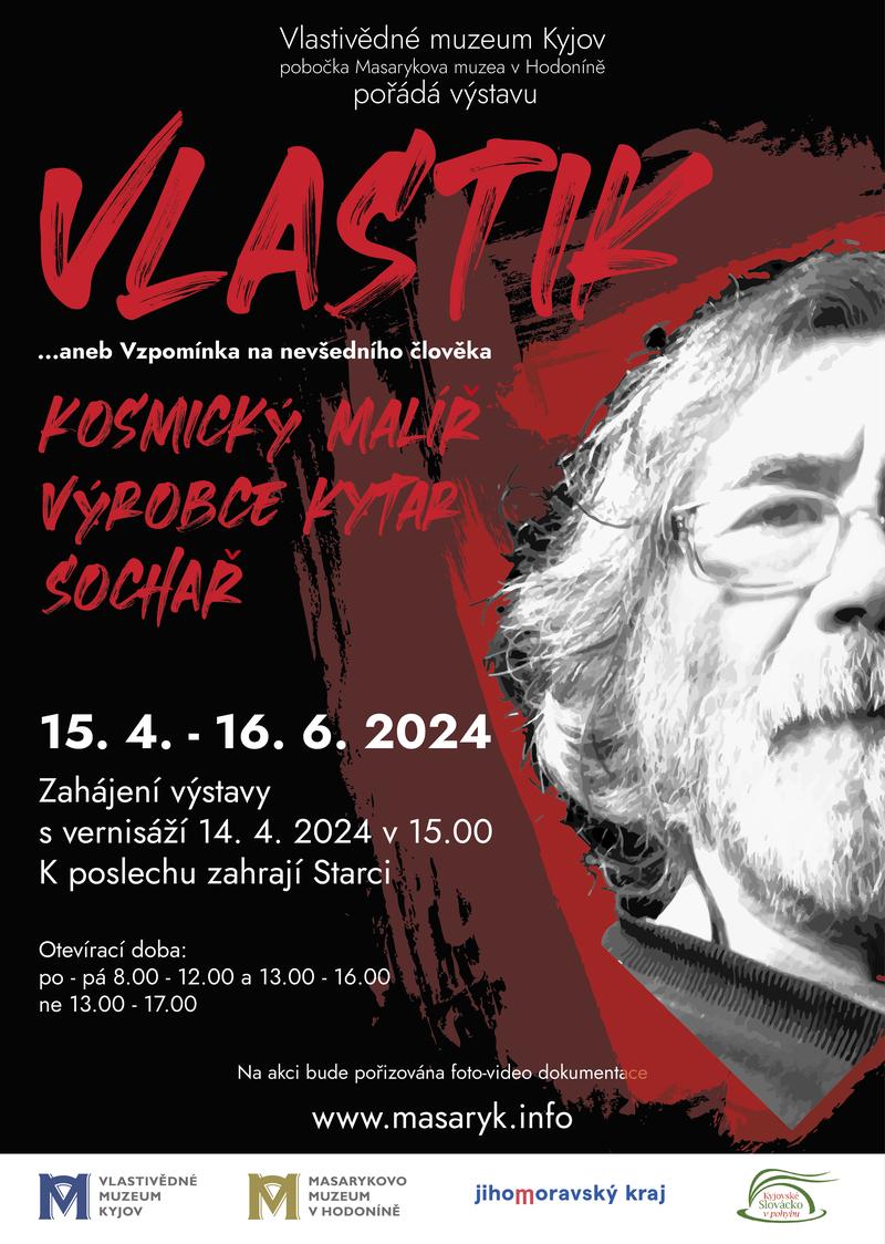 Výstava ve Vlastivědném muzeu Kyjov nabídne rozsáhlou síť původních podkladů a materiálů. Budou představeny Vlastikovy obrazy, kytary jím vyrobené nebo z velké části přepracované, hudba z jeho CD a dokumenty o stavbě soch, které vytvořil.