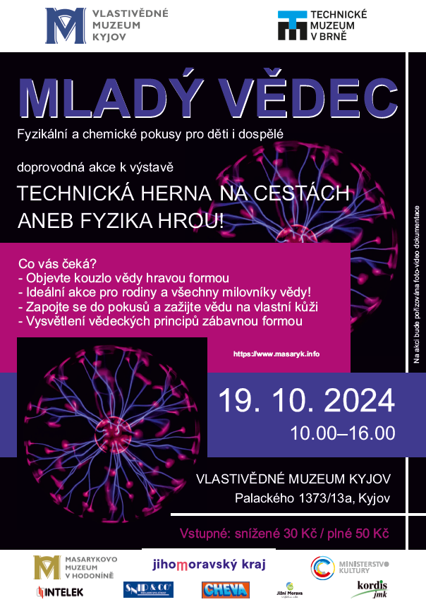 Srdečně zveme návštěvníky na doprovodnou akci k výstavě Technická herna na cestách aneb Fyzika hrou! MLADÝ VĚDEC - fyzikální a chemické pokusy pro děti i dospělé.