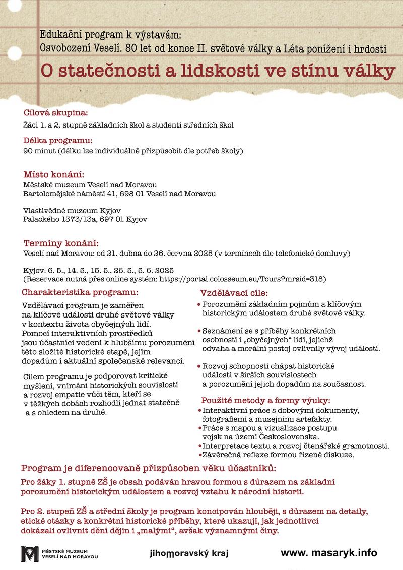 Vzdělávací program má za cíl seznámit žáky 1. a 2. st. základních a středních škol s neobyčejnými příběhy obyčejných lidí i událostmi druhé světové války...