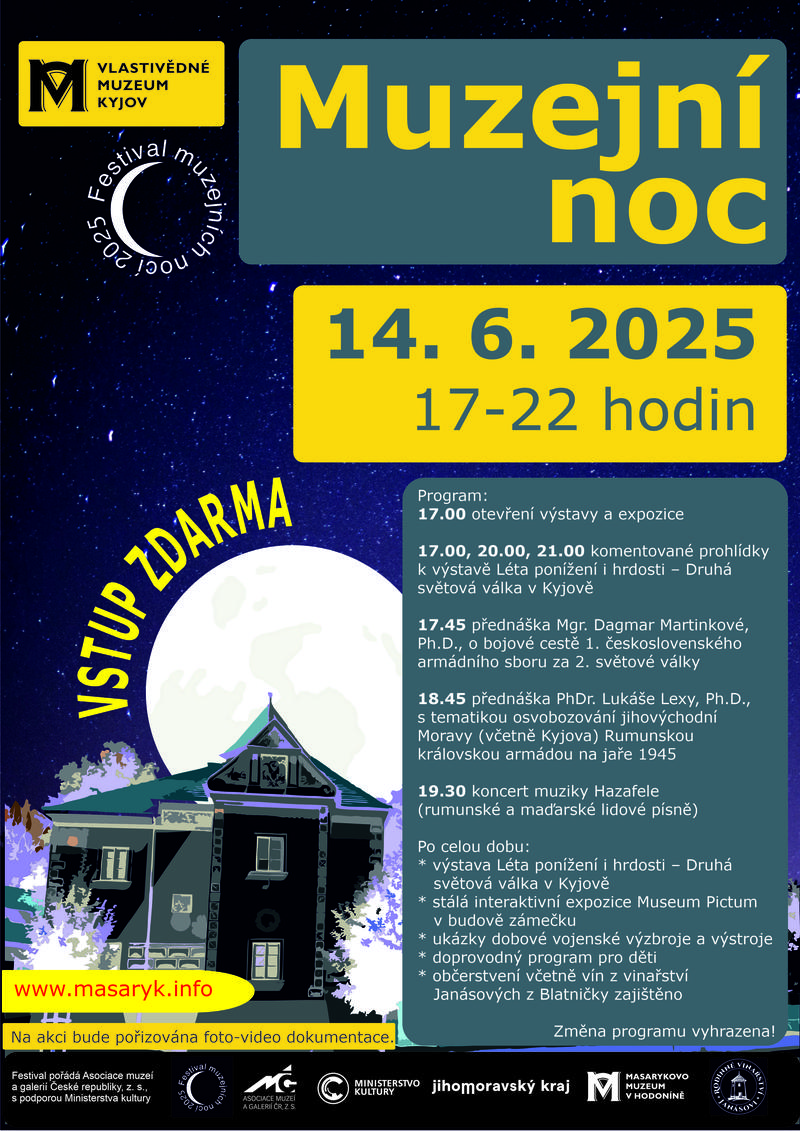 Vlastivědné muzeum Kyjov připravilo na sobotu 14. června 2025 od 17 do 22 hodin již tradiční muzejní noc.