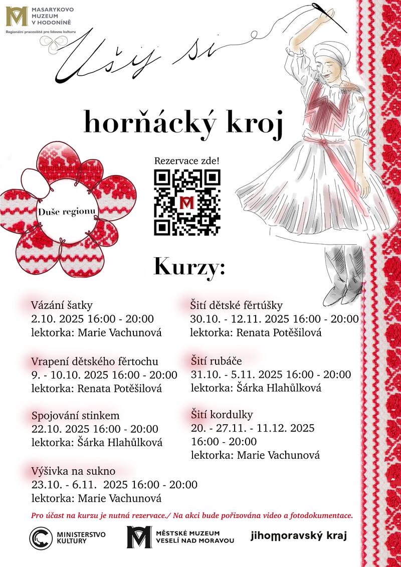 Kurzy budou probíhat v menších skupinkách od října do prosince 2025, přímo v prostorách muzea. Cílem je podpořit živou tradici a předat znalosti i praktické dovednosti spojené s krojem dalším generacím.