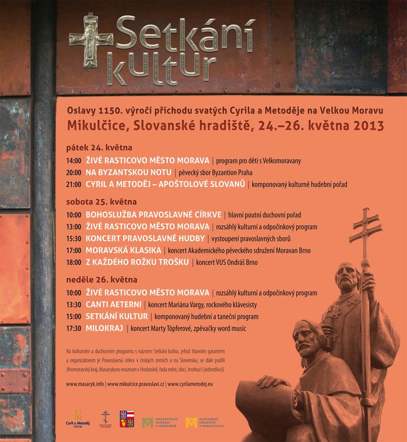 V jubilejním roce 1150. výročí příchodu svatých Konstantina a Metoděje na Velkou Moravu se v Mikulčicích koná jedna z nejvýznamnějších duchovních i kulturních akcí. Uskuteční se pod názvem Setkání kultur v v pátek až neděli 24. až 26. května 2013.