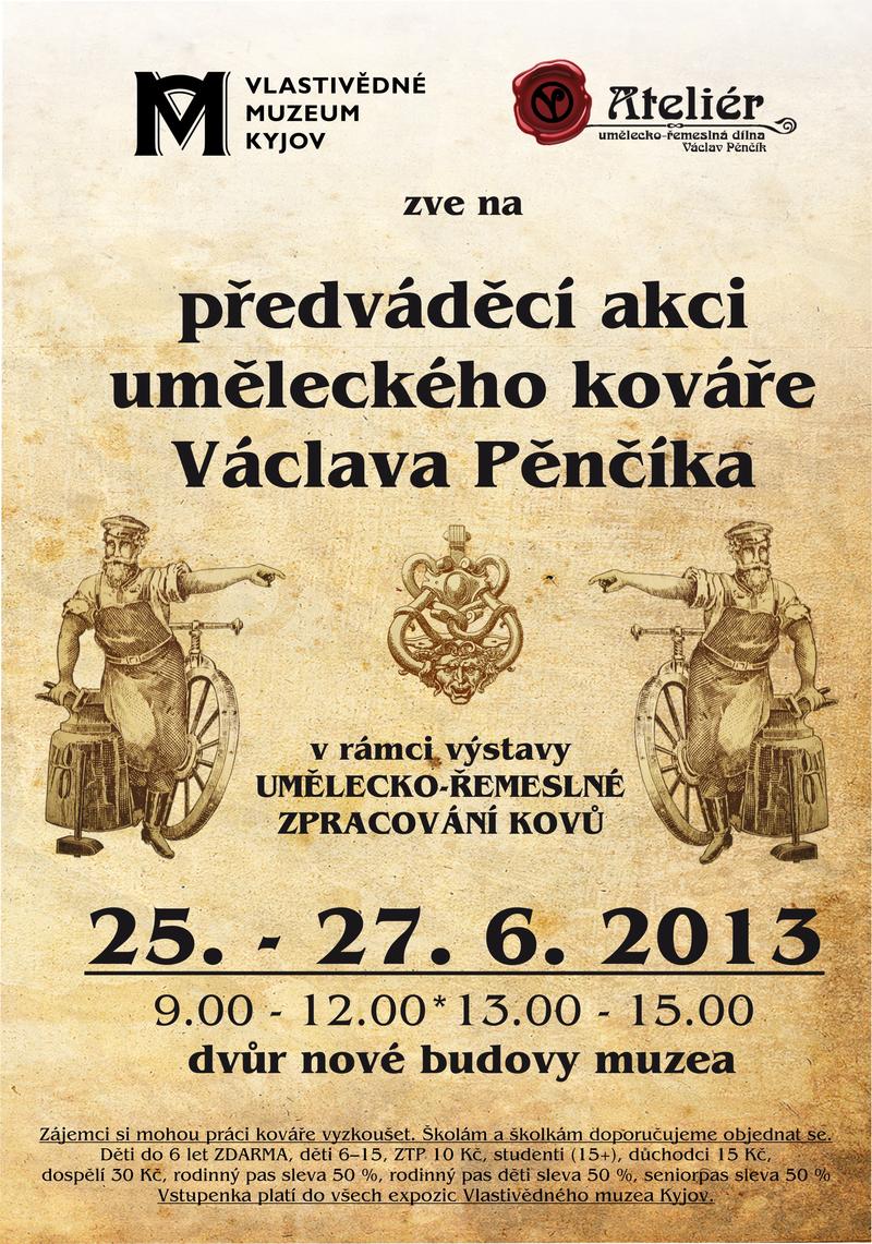 Srdečně zveme návštěvníky Vlastivědného muzea na předváděcí akce uměleckého kováře s možností si řemeslo vyzkoušet na vlastní kůži. Akce proběhne na dvoře u nové budovy muzea. Vstupenka platí do celého Vlastivědného muzea.