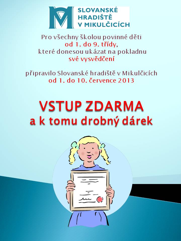 Volný vstup pro děti základních škol, které si přinesou vysvědčení mezi 1. a 10. červencem 2013