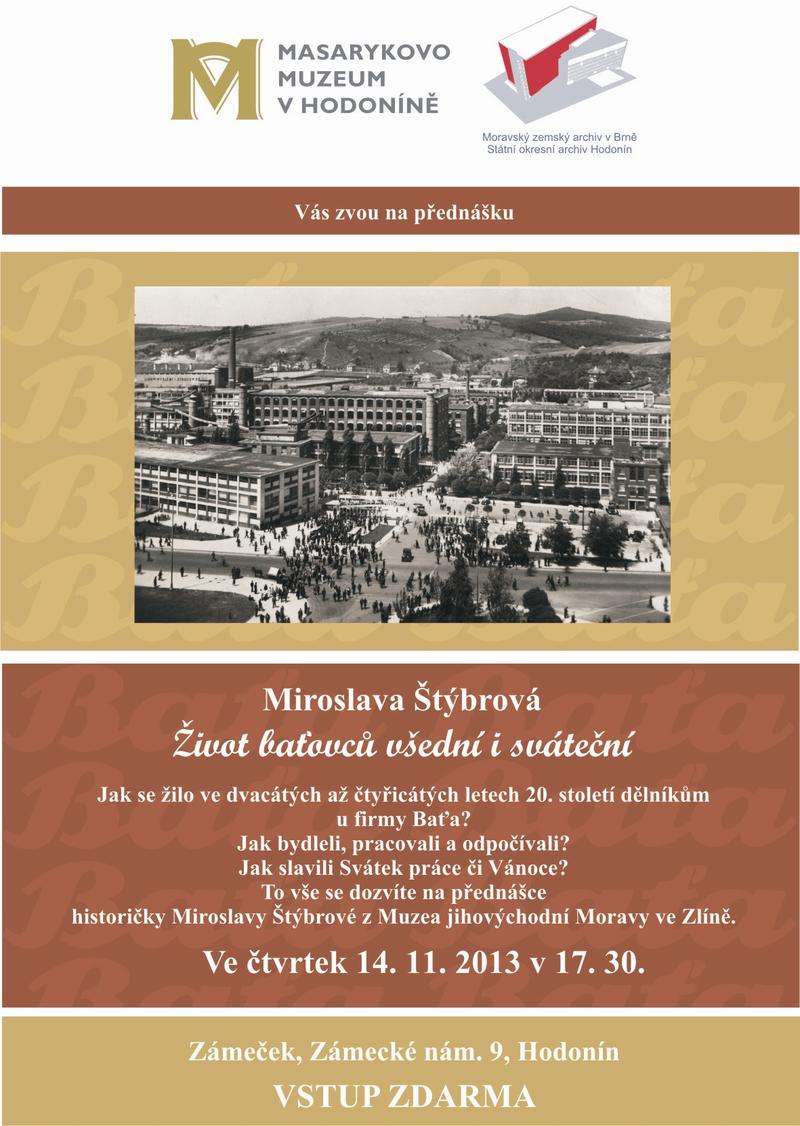 Dne 14. listopadu 2013 se uskuteční v 17 hodin 30 minut přednáška paní Miroslavy Štýbrové z Muzea jihovýchodní Moravy ve Zlíně s názvem Život baťovců všední i sváteční. Po přednášce je možnost prohlédnout si výstavu Hodonínské botky pro strýce i tetky. Přednáška i výstava budou zdarma.