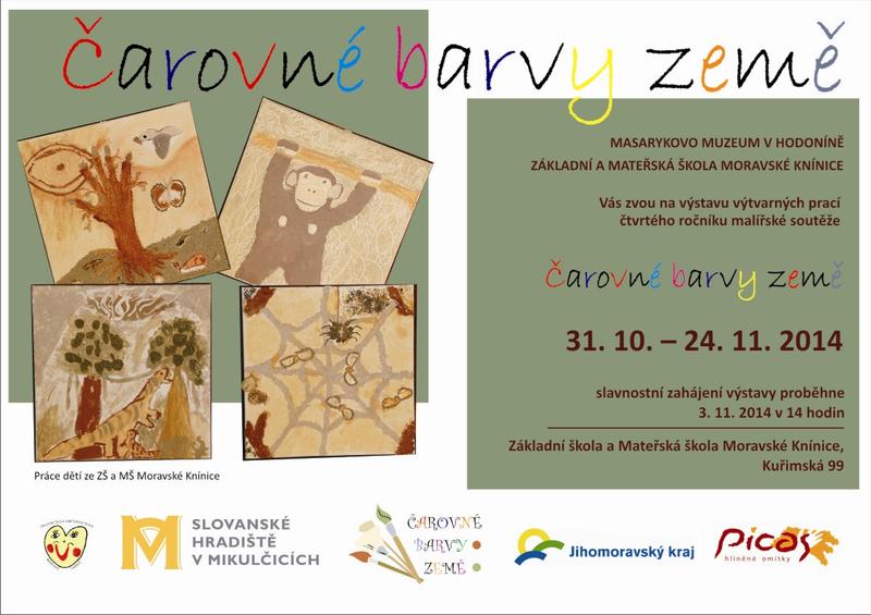 Další z výstav projektu Čarovné barvy země připravilo Slovanské hradiště v Mikulčicích ve spolupráci se Základní školou Moravské Knínice. Výstava se otevře veřejnosti 3. listopadu a potrvá do 24. listopadu 2014. Díla jsou prezentací školních kolektivů, vytvořená pomocí čistě přírodních materiálů. Použité barevné hliněné pigmenty se mísí s dalšími surovinami a i s využitím přírodnin nasbíraných samotnými autory výtvorů, zhotovily týmy velmi působivá díla prezentující barvy naší země. Výstava je vyvrcholením stejnojmenné soutěže, vyhlášené Jihomoravským krajem a garantované Masarykovým muzeem v Hodoníně – Slovanským hradištěm v Mikulčicích.