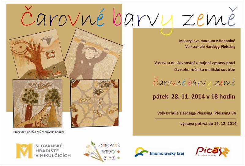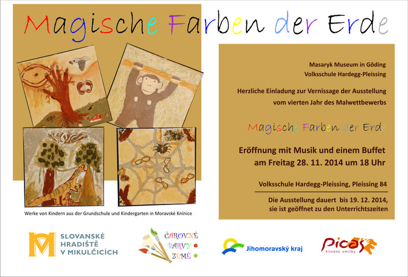 Od 28. listopadu 2014 se v prostorách Základní školy Hardegg Pleissing uskuteční výstava výtvarných prací Čarovné barvy země. Slavnostní zahájení výstavy se uskuteční dne 28. 11. 2014 v 18 hodin. Vítězné práce spolu s dalšími soutěžními obrázky si budou moci návštěvníci prohlédnout do 19. prosince 2014.