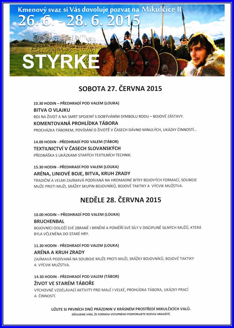Druhé setkání členů Kmenového svazu Styrke s jejich příteli a kamarády ve zbroji. Bohatý program v dobovém táboře především v sobotu 27. června. Programová nabídka.