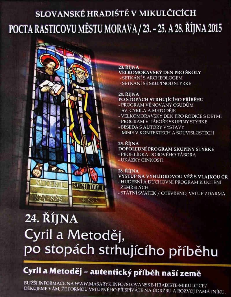 Srdečně vás všechny zveme v termínu od 23. do 25. října na poslední víkendovou akci do areálu Slovanského hradiště v Mikulčicích. Kromě programu Kmenového svazu Styrke se můžete v sobotu odpoledne zúčastnit programu věnovanému osobnostem slovanských věrozvěstů sv. Cyrila a Metoděje, navštívíte besedu s tvůrci a autory výstavy ilustrací Cyrilometodějská misi v kontextech a souvislostech a na programu jsou také zajímavé akce na den státního svátku 28. října. Přijeďte, Těšíme se na vás.