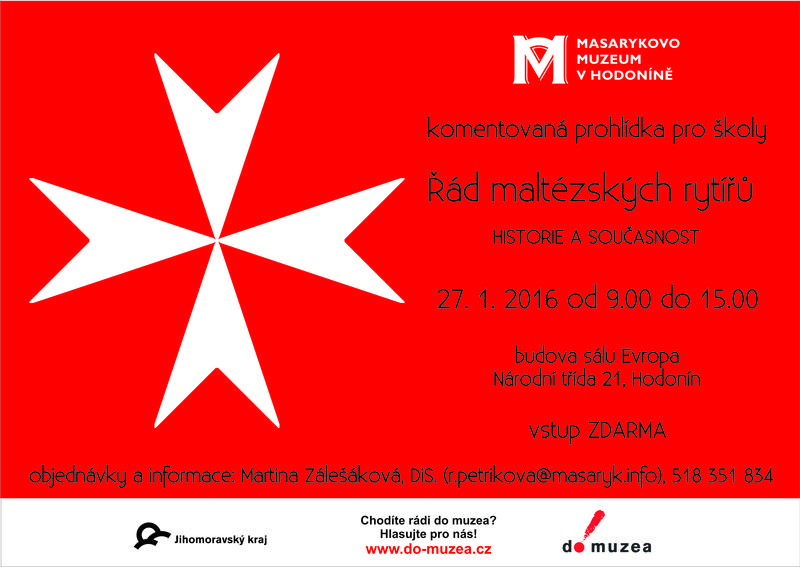 Pro školní skupiny se uskuteční 27.1. 2016 komentovaná prohlídka výstavy Řád Maltézských rytířů v sále Evropa. Školní skupiny nutné objednat předem.