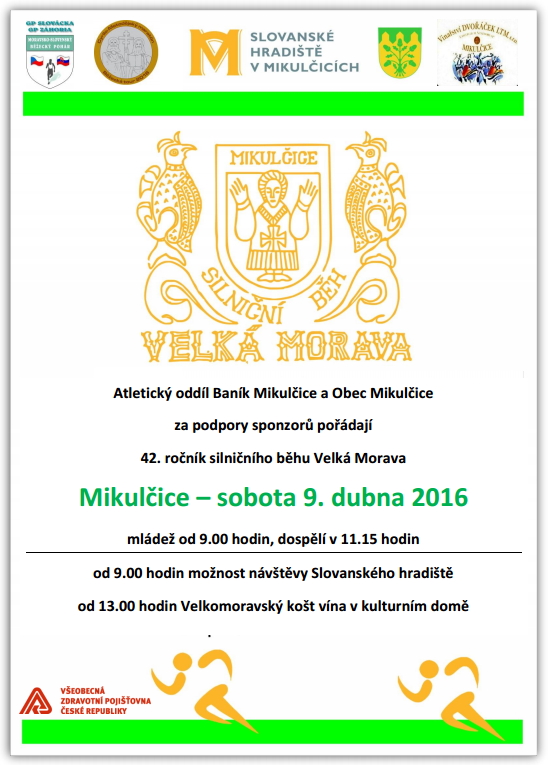 Atletický oddíl Baník Mikulčice a Obec Mikulčice, ve spolupráci se Slovanským hradištěm v Mikulčicích a za podpory sponzorů pořádají 42. ročník silničního běhu Velká Morava. Informace a přihlášky jsou uveřejněny na stránkách atletického klubu Mikulčice: http://www.akmikulcice.wbs.cz/42-rocnik-Velka-Morava-2016.html.