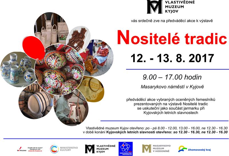 Předváděcí akce vybraných oceněných řemeslníků prezentovaných na výstavě Nositelé tradic se uskuteční jako součást jarmarku při Kyjovských letních slavnostech na Masarykově náměstí Kyjov.