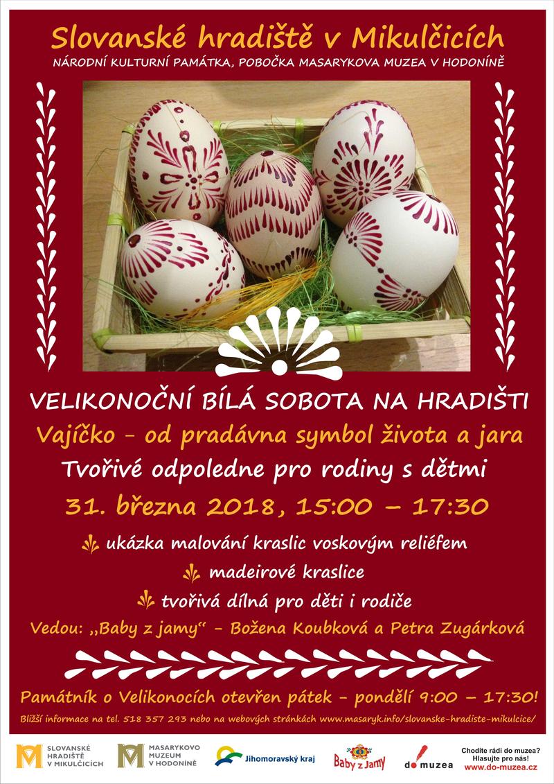 Po všechny sváteční velikonoční dny můžete navštívit náš památník. O Velikonocích je otevřeno od pátku do pondělí vždy od 09.00 do 17.30 hodin. Speciální velikonoční program je připraven pro návštěvníky odpoledne na Bílou sobotu od 15.00 hodin. S lektorkami si můžete připravit velikonoční výzdobu nebo vyrobit vlastní kraslici. Věříme, že samozřejmostí určitě bude návštěva areálu a okolích luk i lesů s jarní sněženkovou nádherou. Přijeďte, budete vítáni. -fs-