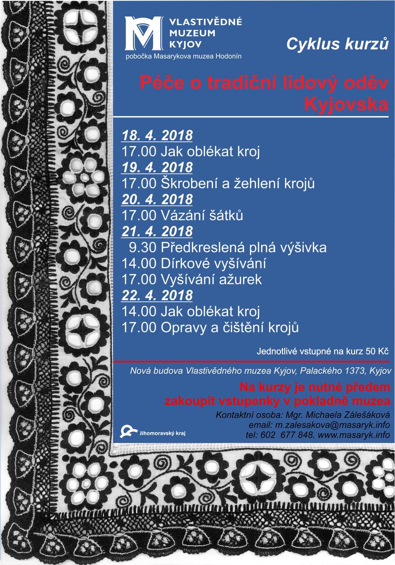 Vzhledem k omezené kapacitě kurzů je nutné předem lístky zakoupit v pokladně Vlastivědného muzea Kyjov.