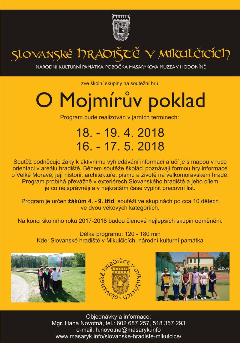Více informací: programy / akce > program pro školy a děti > nabídka doprovodných programů pro školy (pro rok 2018) > podrobné informace k jednotlivým typům doprovodných programů pro školy > Soutěž O Mojmírův poklad