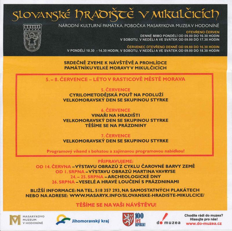 Představujeme vám nabídku programů a akcí na našem památníku v měsíci červenec. Vaši pozornost směřujeme především k rozšířenému víkendu 5. až 8. července, kdy vás srdečně zveme na pořady v rámci cyklu Léto v Rasticově městě Morava. Vaší pozornosti nabízíme také výstavy, které jsou průběžně instalovány v naší galerii. Těšíme se na vaši návštěvu.