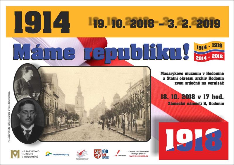 Masarykovo muzeum v Hodoníně a Státní okresní archiv Hodonín si Vás dovoluje pozvat na vernisáž výstavy Máme republiku! Vernisáž se uskuteční 18. října v 17.00 hodin v zámečku Masarykova muzea. Jste srdečně zváni.