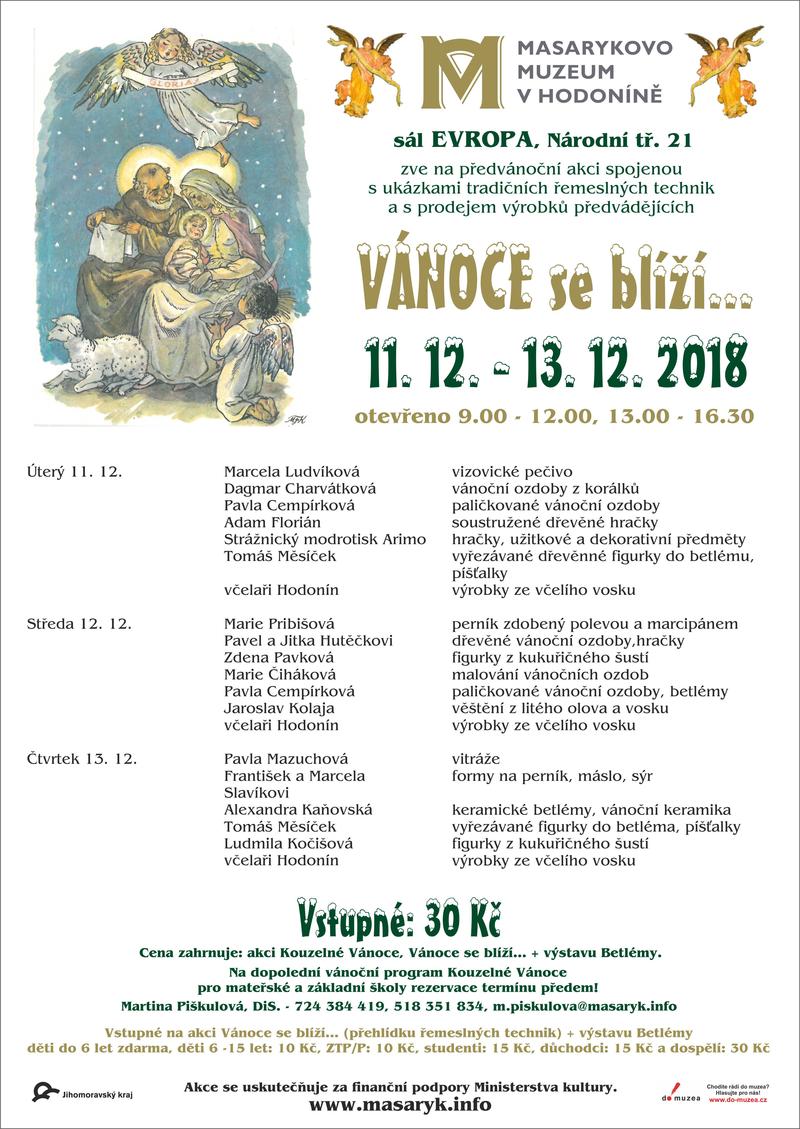 Ukázka tradičních řemeslných technik spojená s prodejem výrobků předvádějících. Akce proběhne od 11.12. 2018 do 13.12. 2018.