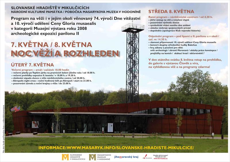Na druhý květnový týden jsme připravili večerní, jitřní a sváteční program, který se uskuteční ve dnech 7. a 8. května. Jeho součástí je úterní podvečerní a večerní program obsahující nejen plavbu na pramicích, prohlídky a pozorování západu Slunce, ale také noční hodinový běh po Akropoli. Den vítězství zahájíme jitřním vítáním Slunce a pozorováním jeho východu. Sváteční den je věnován oslavě 10. výročí udělení Ceny Gloria musaealis. Odpolední program začíná ve 14.30 hodin. Po celý sváteční den 8. května je na program a prohlídky (mimo některé zábavy dětí - skákací hrad, projížďka na koních a cukrovinky) vstup zdarma. Přijeďte, těšíme se na vás. -fs-